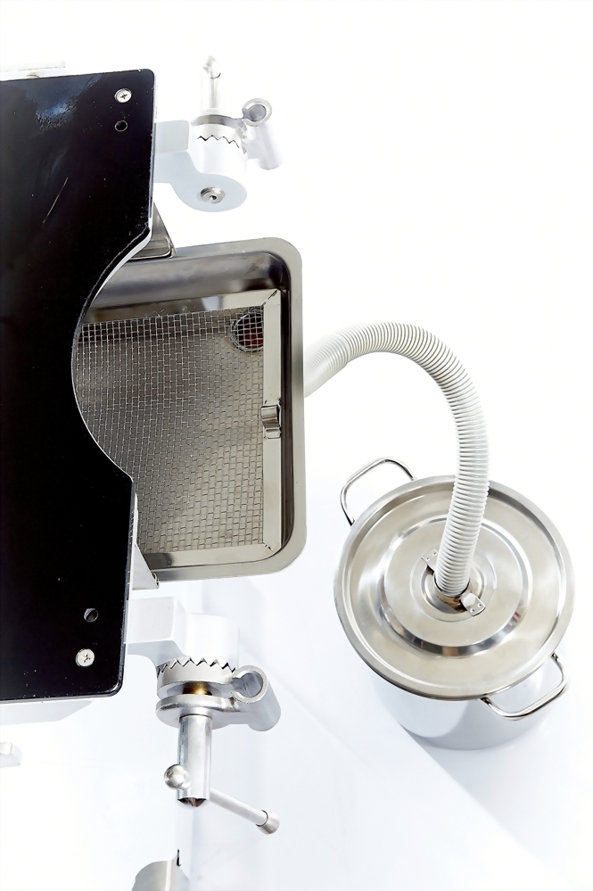 污物盆組為醫療設備用之配件組件,整體包含金屬盆體、連接軟管與固定結構。